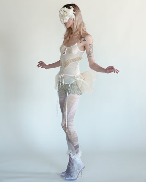 MEW FW25 OYSTER cotton tank top with chain straps// lace trim oyster inspired tank top for casual days with unique flavours// 100% cotton main material with nylon/poly blend trim